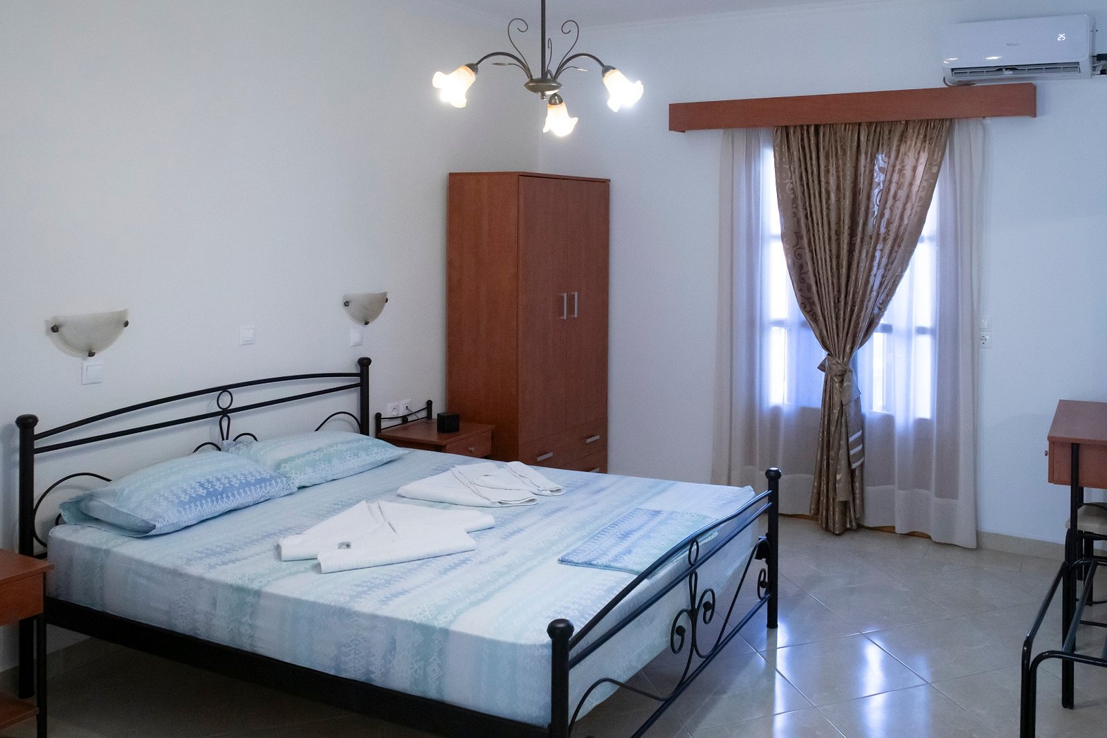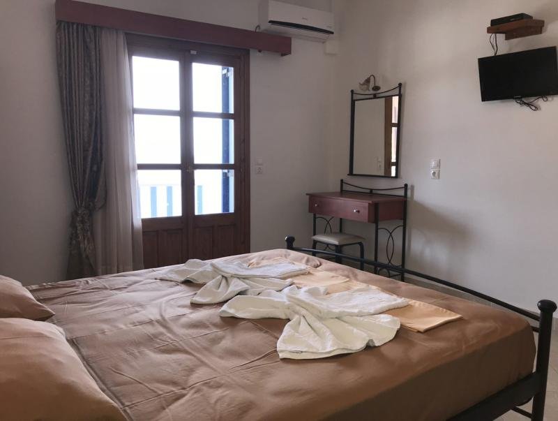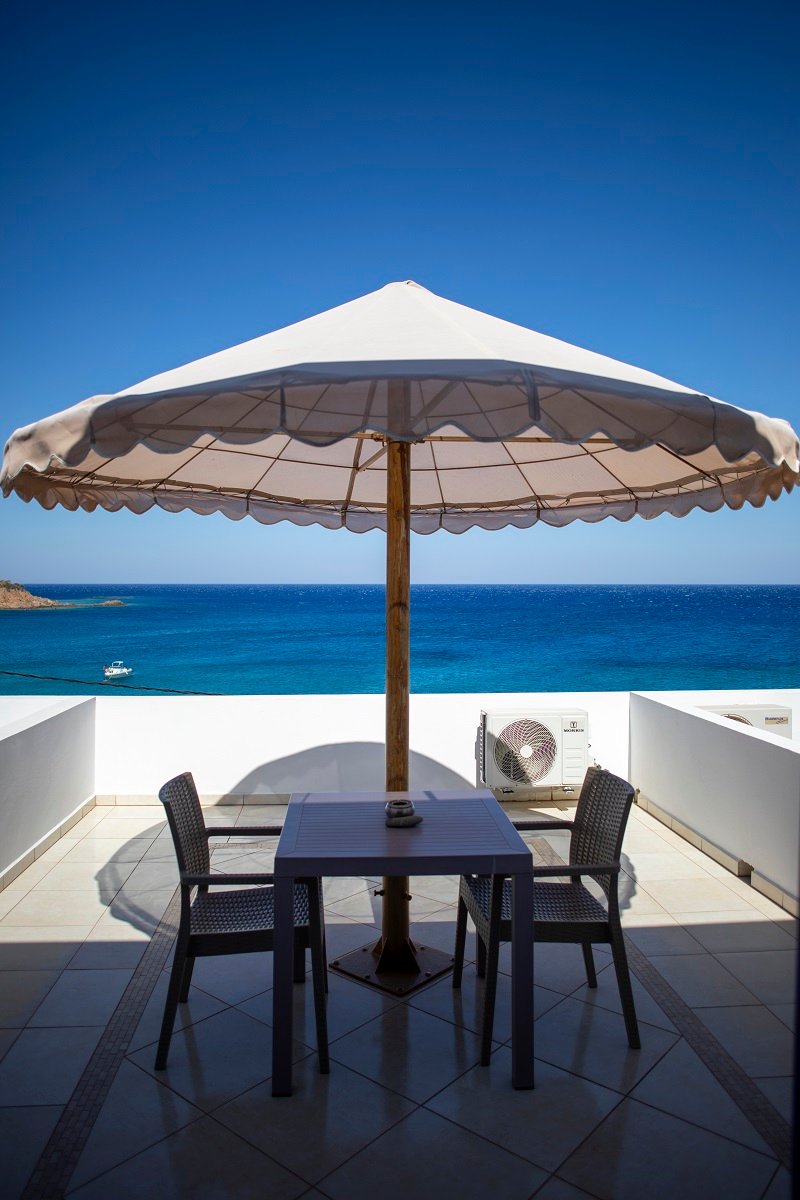 All studios feature a terrace overlooking the stunning Aegean Sea, where visitors can enjoy the sunrise and the beautiful views of the blue waters and Agios Nikolaos beach.
