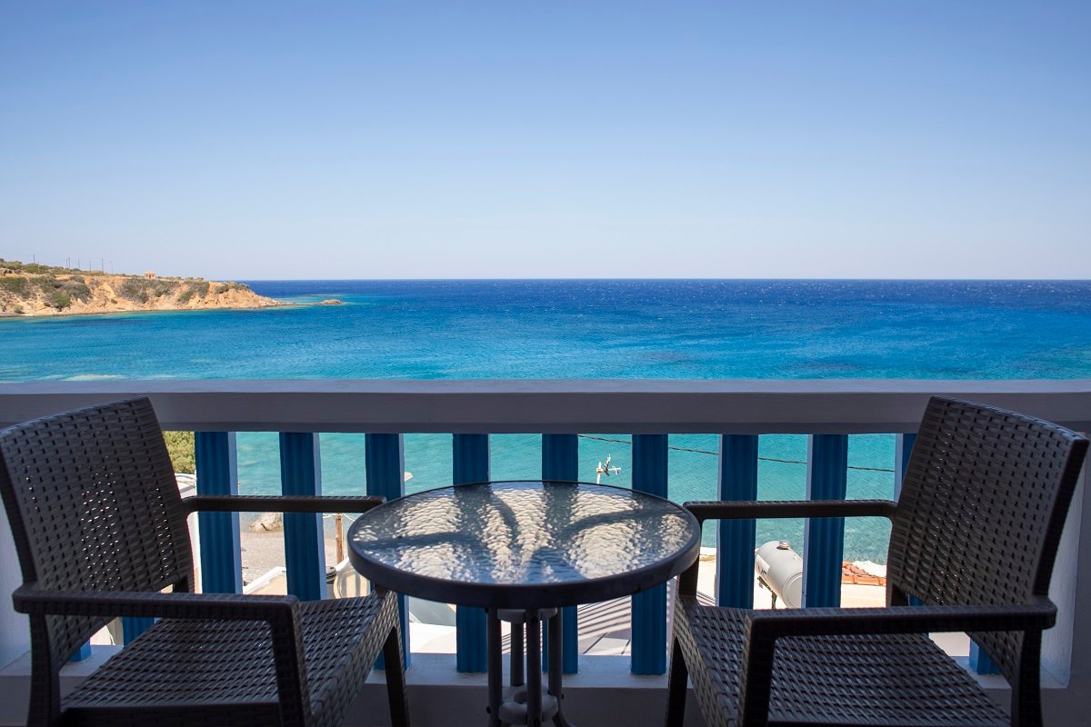 All studios feature a terrace overlooking the stunning Aegean Sea, where visitors can enjoy the sunrise and the beautiful views of the blue waters and Agios Nikolaos beach.